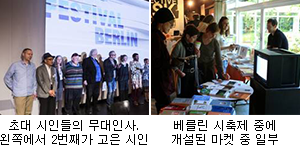 º£¸¦¸° ½ÃÀÇ ÃàÁ¦´Â ¸Å³â 6¿ù°æ °³ÃֵǸç Àι®ÇÐÀÇ ºÎÁ·À» ¾Æ½¬¿öÇÏ´Â ¼¼°èÀû ¿©·ÐÀ» µî¿¡ ¾÷°í ¼º°øÇÑ ÃàÁ¦·Î ÀÚ¸® Àâ¾Æ °¡°í ÀÖ´Ù. ÀÌ ÃàÁ¦¿¡´Â ½Ã¸¦ ÁÖÁ¦·Î ¸¶ÄÏÀÌ °³¼³µÇ¸ç, ¼¼°èÀÇ À¯¸íÃâÆÇ»ç¿¡¼ ½ÃÁýÀ» ¼±º¸À̰í, ¿À·¡µÈ ½Ã ÄÝ·¢¼Ç, ¿µ»ó¿¡ ´ãÀº ÀÛǰ, »ç¿îµå¿Í ½Ã°¡ °áÇÕÇÑ »óǰµéÀ» ÆÇ¸ÅÇÑ´Ù. ±×¸®°í ½Ã¸¦ ÁÖÁ¦·Î ÇÑ ÆÐ¼Ç¼îµµ ¿¸®°í, T-¼ÅÃ÷¿¡ ½Ã¸¦ ÇÁ¸°ÆÃ ÇØÁְųª ½Ã¸¦ »õ°ÜÁø ¼ÅÃ÷µµ »ì ¼ö ÀÖ´Ù. ÀÌ Çà»ç´Â º£¸¦¸° ¹®ÇпöÅ©¼ó(Die Literaturwerkstatt Berlin)¿¡¼ ÁÖ°üÇÏ¸ç µ¶ÀÏ ÁÖÀç °¢±¹ ¹®È¿ø¿¡¼µµ Âü¿©ÇÑ´Ù.
