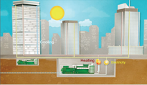 Áö¹æ Á¤ºÎ°¡ °üÇÒÇÏ´Â Áö¿ªÀÇ °Ç¹°¿¡ ´ëÇÑ Àü±â¿Í ³Ã³¹æ ¼ö¿ä¿¡ °üÇÑ ´Ù¾çÇÑ ¸ðÇüÀÌ Àִµ¥, À̰ÍÀ¸·Î »ïÁß¿¡³ÊÁö¹ßÀü ½Ã½ºÅÛÀÇ ÀûÁ¤ÇÑ ±Ô¸ð¿Í ¼³Ä¡ Àå¼Ò¸¦ °áÁ¤ÇÏ¿´´Ù. ±âº» °èȹ¿¡¼ »ïÁß¿¡³ÊÁö¹ßÀü°ú Æó¿¹ßÀü(cogeneration)À¸·Î 477 ¸Þ°¡¿ÍÆ®±îÁö Àü±â¸¦ »ý»êÇÒ ¼ö ÀÖÀ¸¸ç, À̰ÍÀº ¿Â½Ç°¡½º ¹èÃâÀ» 24¡32% Á¤µµ±îÁö °¨¼Ò½ÃŲ´Ù°í ¹àÇû´Ù.