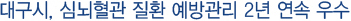 ´ë±¸½Ã´Â ´ë±¸½Ã ÀÇ»çȸ¿ÍÀÇ Çù·Â, °íÇ÷¾Ð?´ç´¢º´°ü¸®»ç¾÷´Ü, ±¤¿ª±³À°Á¤º¸¼¾ÅÍ ¿î¿µ, ±×¸®°í ½Ã-±¸±º °ü°èÀÚ ÇùÀÇüÀÎ ¡®°Ç°Çϸð´Ï¡¯ ¿î¿µÀ» ÅëÇØ »ç¾÷ÃßÁø ±â¹ÝÀ» ±¸ÃàÇÑ °Í µîÀÌ ³ôÀº Æò°¡¸¦ ¹Þ¾Ò´Ù.