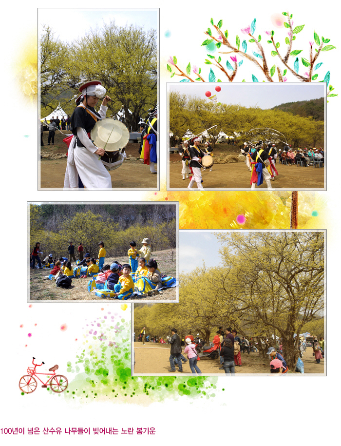 ¸¶À» »ç¶÷µéÀº À̰÷ÀÇ »ê¼öÀ¯°¡ ¼ö·ÉÀÌ Á·È÷ 100³âÀ» ³Ñ´Â´Ù°í ÀÚ¶û½º·¹ À̾߱âÇÑ´Ù. ƯÈ÷ µµ¸³¸®´Â ¸¶À» Àüü°¡ »ê¼öÀ¯ ±º¶ôÁö¸¦ Çü¼ºÇϰí ÀÖ¾î º½Ã¶ ¸¶À» ÀÏ´ë¿¡ ȲȦ°æÀ» ¿¬ÃâÇÑ´Ù. ¶ÇÇÑ °¡À»ÀÌ¸é »ê¼öÀ¯´Â ¼±È«»öÀÇ ¿¸Å¸¦ ¸Î¾î ÇѲ¯ ºÓÀº ¾Æ¸§´Ù¿òÀ» ¼±»çÇÑ´Ù. ÀÌõ »ê¼öÀ¯¸¶À»ÀÇ ½ÃÀÛÀº ¿ª»ç¸¦ °Å½½·¯ ¿Ã¶ó°£´Ù. Á¶¼±¿ÕÁ¶ ÁßÁ¾ ½ÃÀý, Á¶±¤Á¶¸¦ µû¸£´ø ¾ö¿ë¼øÀ̶ó´Â ¼±ºñ°¡ ±â¹¦»çȸ¦ ÇÇÇØ À̰÷À¸·Î ³«ÇâÇß´Ù. ±×¿Í ¶æÀ» °°ÀÌ ÇÑ ´Ù¼¸ ¸íÀÇ ¼±ºñ¿Í ÇÔ²² À̰÷¿¡ À°±«Á¤À̶ó´Â Á¤ÀÚ¸¦ Áþ°í ÁÖÀ§¿¡ ´ÀƼ³ª¹«¿Í »ê¼öÀ¯³ª¹«¸¦ ½ÉÀº °ÍÀÌ ¸¶À»ÀÇ ½ÃÃʰ¡ µÇ¾ú´Ù. À°±«Á¤À̶õ À̸§µµ ¿©¼¸ ¼±ºñ°¡ ¿ìÀǸ¦ Á¤ÀÚ ¾Õ¿¡ ÀÛÀº ¿¬¸øÀ» ÆÄ°í °¢°¢ ´ÀƼ³ª¹« ÇÑ ±×·ç¾¿À» ½ÉÀº °Í¿¡¼ À¯·¡Çß´Ù.