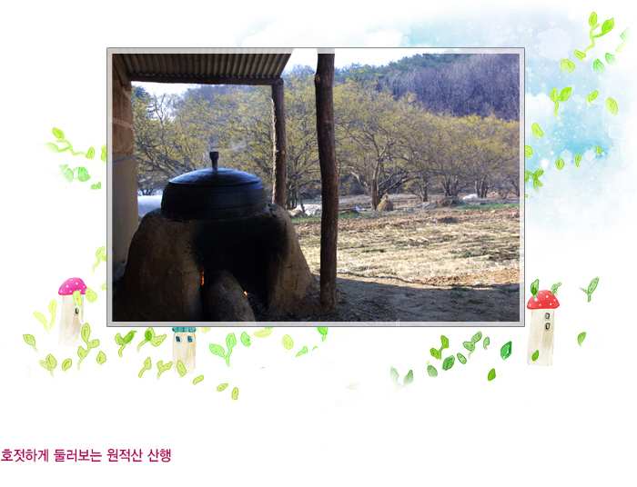 ¸¶À» ¾ÈÂÊ µÞ»êÀ¸·Î ¿À¸£¸é Á¼Àº ¿À¼Ö±æÀÌ ³ª ÀÖ´Ù. °È´Ùº¸¸é ¿À¼Ö±æÀ» °¡·ÎÁö¸£¸ç ¹¦ÇÏ°Ô ¾²·¯Áø ³ª¹«°¡ ¹öƼ°í ÀÖ´Â ¸ð½ÀÀ» º¼ ¼ö Àִµ¥ ¸¶Ä¡ °ø·æÀÌ ±æÀ» °¡·Î¸·°í ÀÖ´Â µíÇÑ µ¶Æ¯ÇÑ Çü»óÀÌ´Ù. ÃàÁ¦ ±â°£¿¡µµ À̰÷±îÁö µé¾î¿À´Â »ç¶÷Àº µå¹°¾î È£Á£ÇÏ°Ô °È±â¿¡ ¾ÆÁÖ ÁÁ´Ù. ¸¶À»¿¡¼ »êÁßÅαîÁö ¿ä¸®Á¶¸® À̾îÁö´Â »êÃ¥±æÀº 3km Á¤µµ¸ç ½¬¾ö½¬¾ö °É¾î ¸¶À»À» ÇÑ ¹ÙÄû µÑ·¯º¸´Â µ¥ 1½Ã°£Àº Á·È÷ °É¸°´Ù. õõÈ÷ »êÇàÀ» Áñ±â´Ù º¸¸é ¾ÆÁ÷ ¾Ó»óÇÑ °¡Áö¸¦ ¹þ¾î³ªÁö ¸øÇÏ´Â ´Ù¸¥ ³ª¹«µé¿¡ ºñÇØ »ê¼öÀ¯³ª¹«´Â ³ë¶õ²ÉÀÌ Ç³¼ºÇÏ´Ù. »ê¼öÀ¯³ª¹«´Â °¡Áö ³¡¿¡ ¿ì»ê»ìó·³ ²ÉÀÚ·ç°¡ ÆîÃÄÁö°í ±× ³¡¿¡ ÀÛÀº ²ÉÀÌ ÇǾÙ. ¿øÀû»ê ±â½¾ÀÇ Á¶±Ý ³ôÀº µÐ´ö¿¡ ¿Ã¶ú´õ´Ï ¸¶À»ÀÌ ÇÑ´«¿¡ ³»·Á´Ùº¸ÀδÙ. ¸¶À» Àüü¿¡ ³ë¶õ»ö ¹°°¨À» Èð»Ñ·Á ³õÀº °Í °°´Ù. ±×¾ß¸»·Î º½ºûÀÌ´Ù. º½³¯ÀÇ ²É³îÀÌ´Â °Ü¿ì³» ´ÝÈù ¸¶À½ÀÇ ¹®À» ¿¾îÁÖ°í ´«À» ¹àÈù´Ù. ¸¶À½¿¡ ²É³ª¹« ÇÑ ±×·ç ½É°í ½Í¾îÁø´Ù.
