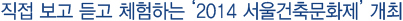 ¼¿ïƯº°½Ã´Â ¿À´Ã 10¿ù 31ÀϱîÁö ¡®°ø°¨ÀÇ µµ½Ã°ÇÃ࡯À» ÁÖÁ¦·Î ¡®2014 ¼¿ï°ÇÃ๮ÈÁ¦¡¯¸¦ °³ÃÖÇÑ´Ù. À̹ø ¹®ÈÁ¦´Â ÀÏÁÖÀÏÀ̾ú´ø Çà»ç ±â°£À» ÇÑ ´Þ·Î ´Ã¸®°í, °ÇÃà¿¡ °ü½ÉÀÌ ÀÖ´Â ½Ã¹ÎµéÀÌ Á÷Á¢ Âü¿©ÇÒ ¼ö Àִ üÇèÇü ÇÁ·Î±×·¥À» È®´ëÇß´Ù.