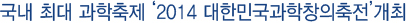 ±¹³» ÃÖ´ë ±Ô¸ðÀÇ °úÇÐÃàÁ¦ÀÎ ¡®2014 ´ëÇѹα¹°úÇÐâÀÇÃàÀü(ÀÌÇÏ °úÇÐâÀÇÃàÀü)¡¯ÀÌ 11¿ù 3ÀϺÎÅÍ 11¿ù 8ÀϱîÁö ºÎ»ê±¤¿ª½Ã º¤½ºÄÚ Á¦2Àü½ÃÀå¿¡¼ °³ÃֵȴÙ.
