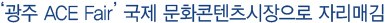 ±¤ÁÖ±¤¿ª½Ã °ü°èÀÚ´Â ¡°À̹ø ±¤ÁÖ ACE Fair´Â Âü°¡¾÷ü¿Í ¹ÙÀÌ¾î ±Ô¸ð»Ó¸¸ ¾Æ´Ï¶ó »ó´ã½ÇÀû¿¡¼ º¼ ¼ö ÀÖµíÀÌ ´ëÇѹα¹À» ´ëÇ¥ÇÏ´Â ¹®ÈÄÜÅÙÃ÷ À¯Åë½ÃÀåÀ¸·Î ÀÚ¸® Àâ¾Ò°í, ±¤ÁÖÀÇ ¹®È»ê¾÷ ¹ßÀüÀ» À§ÇÑ ¹®ÈÄÜÅÙÃ÷ ÃÖ½ÅÁ¤º¸ Á¦°ø Ãø¸é¿¡¼µµ »ó´çÇÑ È£ÀÀÀ» ¾ò¾ú´Ù.¡±¶ó¸ç ¡°¾ÕÀ¸·Î ±¤ÁÖ ACE Fair¸¦ ´ëÇѹα¹À» ¶Ù¾î³Ñ¾î ¼¼°èÀûÀÎ ¹®ÈÄÜÅÙÃ÷ Àü½Ãȸ·Î ¹ßÀü½ÃŰ°Ú´Ù¡±¶ó°í ¸»Çß´Ù.