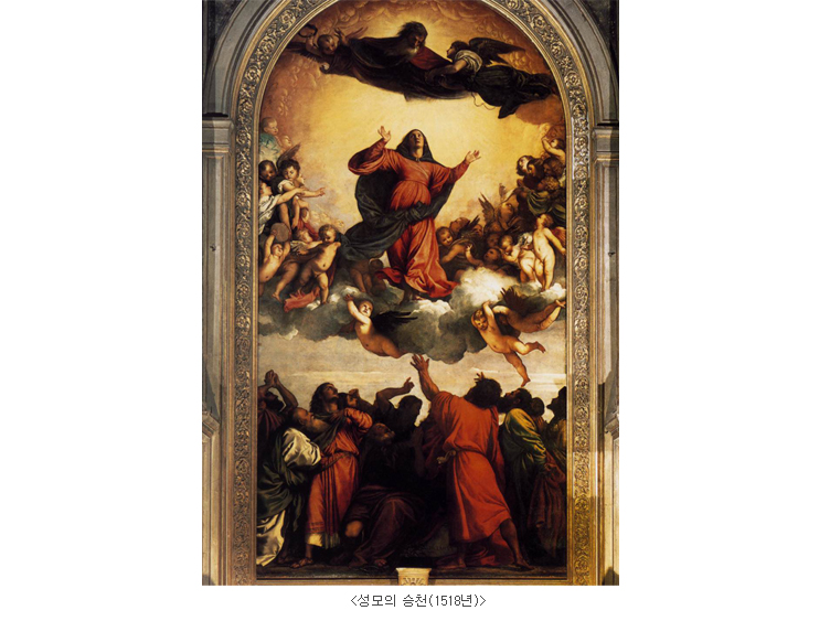 15¼¼±âÀÇ ÇÇ·»Ã¼, 16¼¼±â ÃÊ ·Î¸¶¿¡ À̾î 16¼¼±â Áß¿±¿¡ ¼¾ç ¹Ì¼úÀÇ Áß½ÉÁö·Î ¶°¿À¸¥ °÷Àº 'º£³×Ä¡¾Æ'´Ù. À̰÷¿¡¼ ¾ÈÁ¤ÀûÀÎ ±¸µµ¿Í ²Ä²ÄÇÑ ¼¼ºÎ, ¸Å²öÇÑ ¸¶¹«¸®°¡ Ư¡ÀÎ 15¼¼±â È¸È ÀüÅë°ú ±Ùº»ÀûÀ¸·Î ´Ù¸¥ 16¼¼±âÀû ¹Ì¼ú, Áï Ȱ±â ³ÑÄ¡´Â Çõ½ÅÀûÀÎ ±¸¼º°ú »öä¿Í º× ÀÚ±¹ÀÌ »ì¾Æ ÀÖ´Â 'ȸÈÀûÀΠȸÈ(Painterly Painting)'·ÎÀÇ ÀÌÇàÀ» È®½ÇÈ÷ º¸¿©ÁÖ°í, ÀÌÈÄ ¼¾ç ȸÈÀÇ ±âº» ¸Åü°¡ µÇ´Â 'ĵ¹ö½º¿¡ À¯È' ±â¹ýÀ» °³Ã´ÇÑ 'ȸÈÀÇ ±ºÁÖ'°¡ ¹Ù·Î Ƽġ¾Æ³ë´Ù. ¿µ¾î±Ç¿¡¼ Ƽ¼Ç(Titian)À̶ó°í ºÎ¸£´Â Ƽġ¾Æ³ë º£Ã¿¸®¿À(Tiziano Vecellio, 1490³â°æ~1576³â)´Â º£³×Ä¡¾Æ¿Í ½Å¼º·Î¸¶Á¦±¹ °æ°è »çÀÌÀÇ »ê¾Ç Áö¿ª¿¡ ÀÖ´Â ¸¶À» ÇÇ¿¡º£ µð Ä«µµ·¹(Pieve di Cadore)¿¡¼ ž´Ù. ±×ÀÇ »î¿¡ ´ëÇØ¼´Â Ȱ¡°¡ »ì¾Æ ÀÖ¾ú´ø 1557³â¿¡ ¾²ÀÎ µ¹Ã¼(Lodovico Dolce)ÀÇ '¾Æ·¹Æ¼³ë ȤÀº ȸÈÀÇ ´ëÈ(L'Aretino ovvero Dialogo della Pittura)'¸¦ ½ÃÀÛÀ¸·Î ¸¹Àº ±â·ÏÀÌ ³²¾Æ ÀÖÀ¸³ª, Ãâ»ý³âÀÌ Á¤È®ÇÏÁö ¾Ê´Ù. Ȱ¡ º»Àεµ »óȲ¿¡ µû¶ó ´Ù¸¥ Á¤º¸¸¦ Á¦°øÇß´Ù. 1477³â¿¡ ž Á×À» ¶§ ³ªÀ̰¡ 99¼¼¿´´Ù´Â ½ÅÈÀûÀÎ À̾߱⵵ ÀüÇØÁö°í ÀÖÁö¸¸, ÀϹÝÀûÀ¸·Î´Â 1485³â¿¡¼ 1490³â »çÀÌ¿¡ ÅÂ¾î³ °ÍÀ¸·Î ÃßÃøµÇ°í ÀÖ´Ù. 1500³â°æ °íÇâÀ» ¶°³ª º£³×Ä¡¾Æ¿¡ ¿Â Ƽġ¾Æ³ë´Â ¸ðÀÚÀÌÅ© ÀåÀÎ ¼¼¹Ù½ºÆ¼¾Æ³ë ÁÖÄ«Åä(Sebastiano Zuccato)ÀÇ µµÁ¦ »ýȰ·Î Ȱ¡ ¼ö¾÷À» ½ÃÀÛÇØ, º£³×Ä¡¾Æ ȸȸ¦ À̲ø´ø Ȱ¡µéÀÎ Á¨Æ¿·¹ º§¸®´Ï(Gentile Bellini), Áö¿À¹Ý´Ï º§¸®´Ï(Giovanni Bellini)¸¦ Â÷·Ê·Î ½º½ÂÀ¸·Î »ï¾Ò´Ù. º§¸®´Ï ÇüÁ¦ ¿Ü¿¡ ÃÊ±â Æ¼Ä¡¾Æ³ë Èdz Çü¼º¿¡ Å« ¿µÇâÀ» ÁØ È°¡´Â ´ç½Ã ÁÖ¸ñ¹Þ´ø ½Å¿¹ Áö¿À¸£Áö¿À³×(Giorgione)¿´´Ù. 1510³â, º£³×Ä¡¾Æ¿¡ Àü¿°º´ÀÌ µ¹¾Æ »ï½Ê ´ë ÃʹÝÀÌ´ø Áö¿À¸£Áö¿À³×°¡ °©Àڱ⠻ç¸ÁÇÏÀÚ ±×´Â ÆÄµµ¹Ù·Î ÇǽÅÀ» Çß°í ±×°÷¿¡¼ ½ºÄí¿Ã¶ó µ¨ »êÅä(Scuola del Santo)¿¡ ÇÁ·¹½ºÄÚȸ¦ ³²°å´Ù. 1514³â¿¡´Â º£³×Ä¡¾Æ¿¡ ÀÚ½ÅÀÇ ÀÛ¾÷ÀåÀ» ¸¸µé°í µ¶¸³ÇÏ¿© º»°ÝÀûÀΠȰµ¿À» ½ÃÀÛÇß´Ù. Âù¶õÇÑ ºûÀÌ µÈ »öä 1516³â¿¡ »ç¸ÁÇÑ Áö¿À¹Ý´Ï º§¸®´ÏÀÇ µÚ¸¦ ÀÌ¾î º£³×Ä¡¾ÆÀÇ ´ëÇ¥ Ȱ¡·Î ¶°¿À¸¥ Ƽġ¾Æ³ë ÃÖÃÊÀÇ ¾ß½ÉÀÛÀÌÀÚ ±×ÀÇ À̸§À» µµ½Ã ¾ÈÆÆ¿¡ ¾Ë¸° ±×¸²ÀÌ, »êŸ ¸¶¸®¾Æ ±Û·Î¸®¿À»ç µ¥ÀÌ ÇÁ¶ó¸®(Santa Maria Gloriosa dei Frari)ÀÇ µ¿ÂÊ ³¡(Apse)¿¡ 1518³â ¼³Ä¡µÈ º£³×Ä¡¾Æ ÃÖ´ëÀÇ Á¦´ÜÈ <¼º¸ðÀÇ ½Âõ(Assunta)>ÀÌ´Ù.