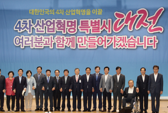 대전광역시는 우리나라 40년 과학발전사와 성장을 같이한 도시로, 우수한 R&D 역량, 기술 역량, 인재가 집결된 ‘준비된 4차 산업혁명의 최적지’라고 할 수 있다. 4차 산업혁명 대응이 다소 뒤처진 우리나라가 경쟁력을 갖추기 위해서는 빠른 시일 내 가시적인 성과를 도출할 수 있는 대전이 그 중심 역할을 해야 한다. 대통령도 지역공약 제1호로 ‘4차 산업혁명특별시 대전’ 육성을 약속한 바 있다. 대전시의 목표는 대전을 대한민국의 4차 산업혁명 성공모델로 만들어 전국에 확산·보급하는 것이다. 국가의 혁신성장을 주도하고, 미래먹거리 발굴에 앞장서 시민 여러분의 삶에 여유를 더하고, 불편함은 줄이고, 일자리는 늘리고, 그 성과는 시민 모두가 나눠 갖는 스마트한 미래도시의 모습을 선도적으로 구축하는 것이다. 대전시는 4차 산업혁명 특별시 육성을 위해 2016년 9월부터 정부 정책 등과 연계 가능한 대전형 미래 먹거리 특화 사업 발굴을 시작으로, 4차 산업혁명 TF팀을 구성하여 본격적인 4차 산업혁명 선점을 위한 추진동력을 마련했다.