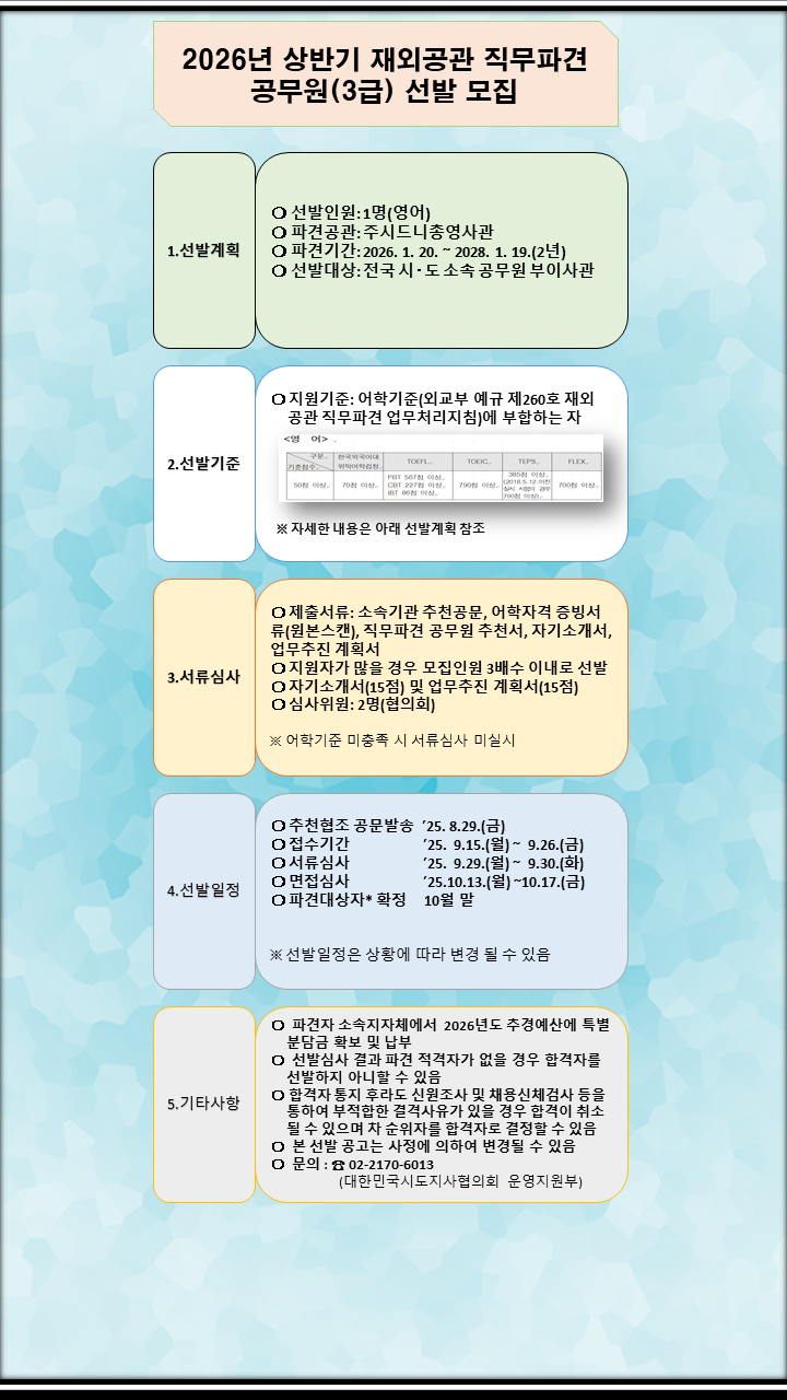 2026년 상반기 재외공관 직무파견 공무원(3급) 선발 모집