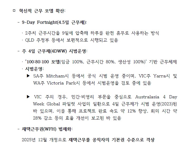 [Queensland Government] 9일 포트나이트/압축근무 정책: 주정부 공무원 근무 형태 유연화 지침