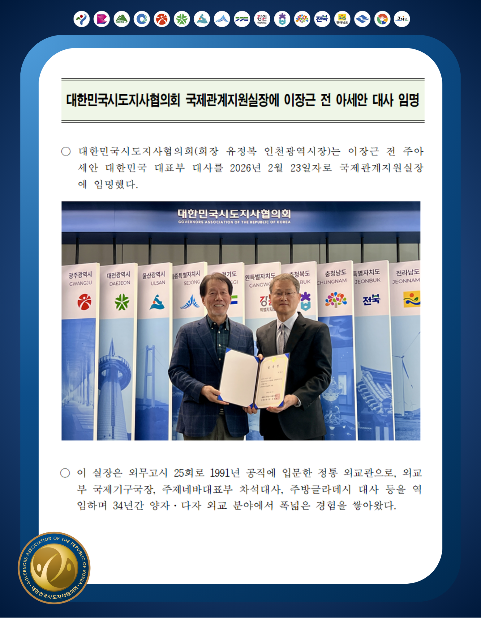 대한민국시도지사협의회의 행사/세미나를 소개합니다.