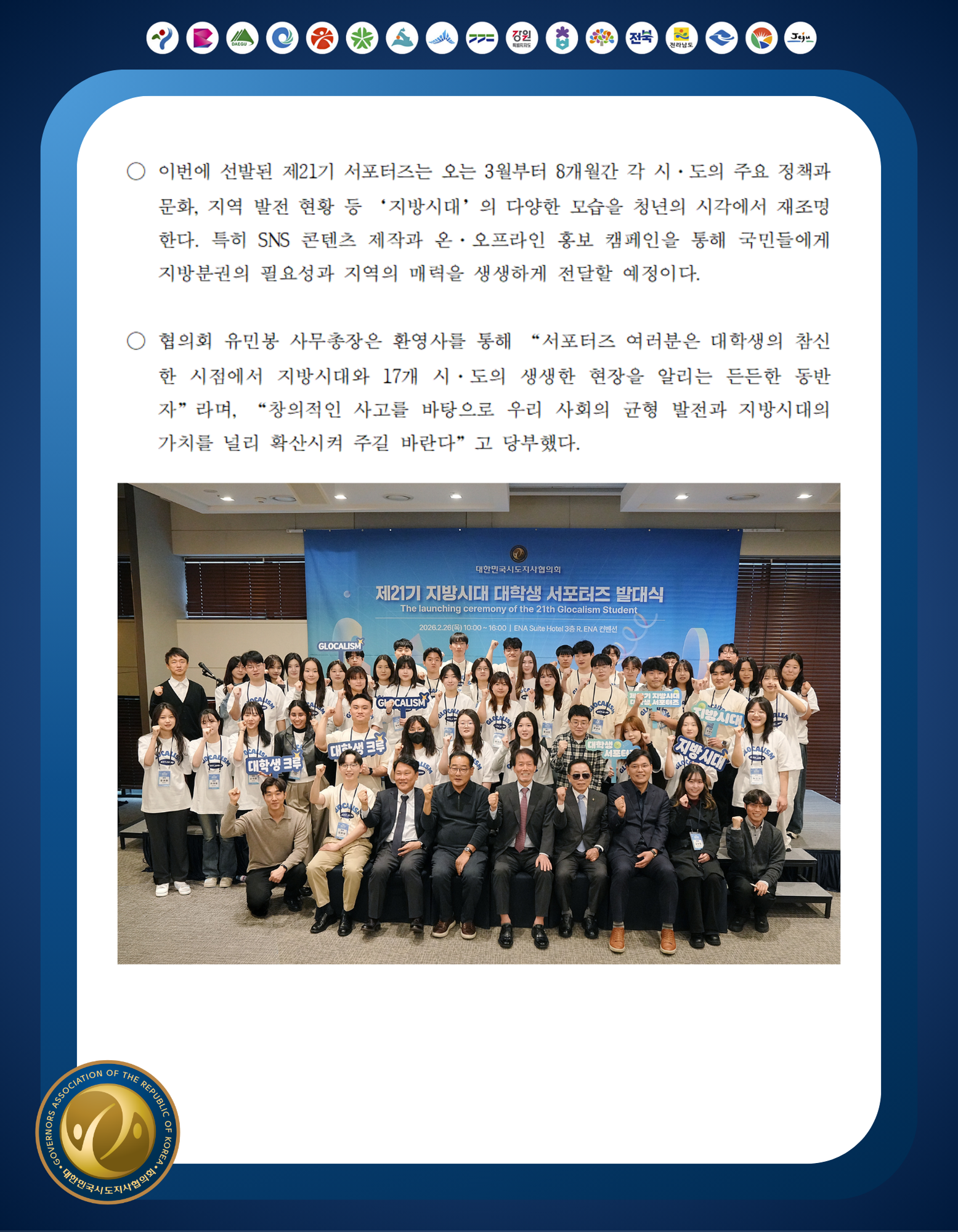 대한민국시도지사협의회, ‘제21기 지방시대 대학생 서포터즈 발대식’ 서울에서 개최