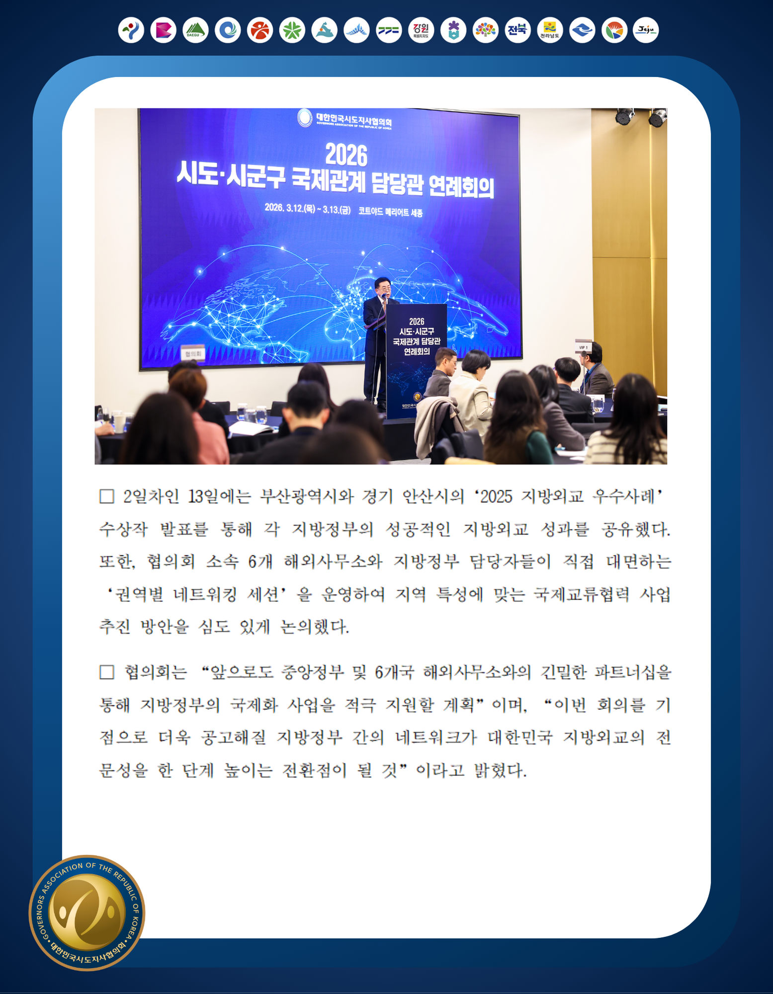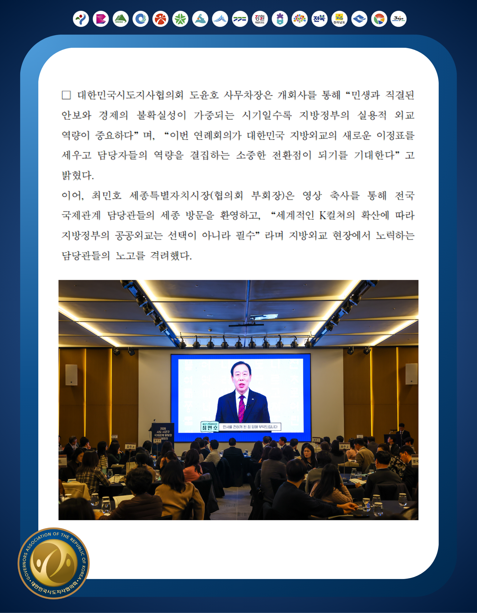 대한민국시도지사협의회의 행사/세미나를 소개합니다.