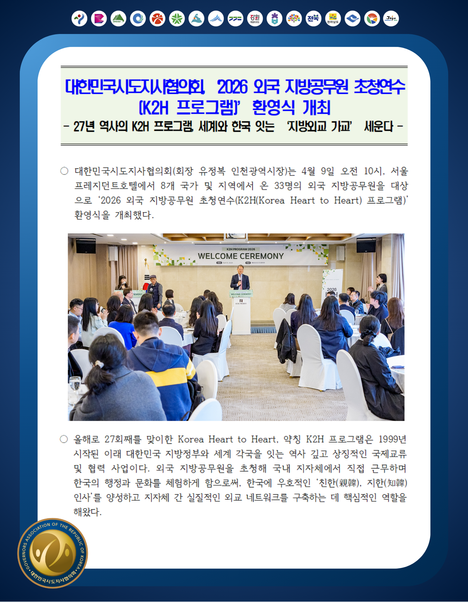대한민국시도지사협의회의 행사/세미나를 소개합니다.