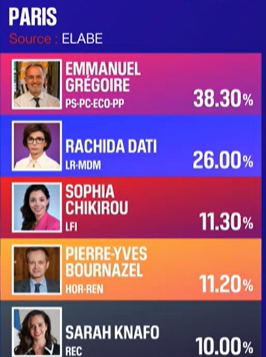 | 파리 | 에마뉘엘 그레구아르 (좌파 연합) | 38.30% | 안 이달고 시장의 후계 구도 강화 |