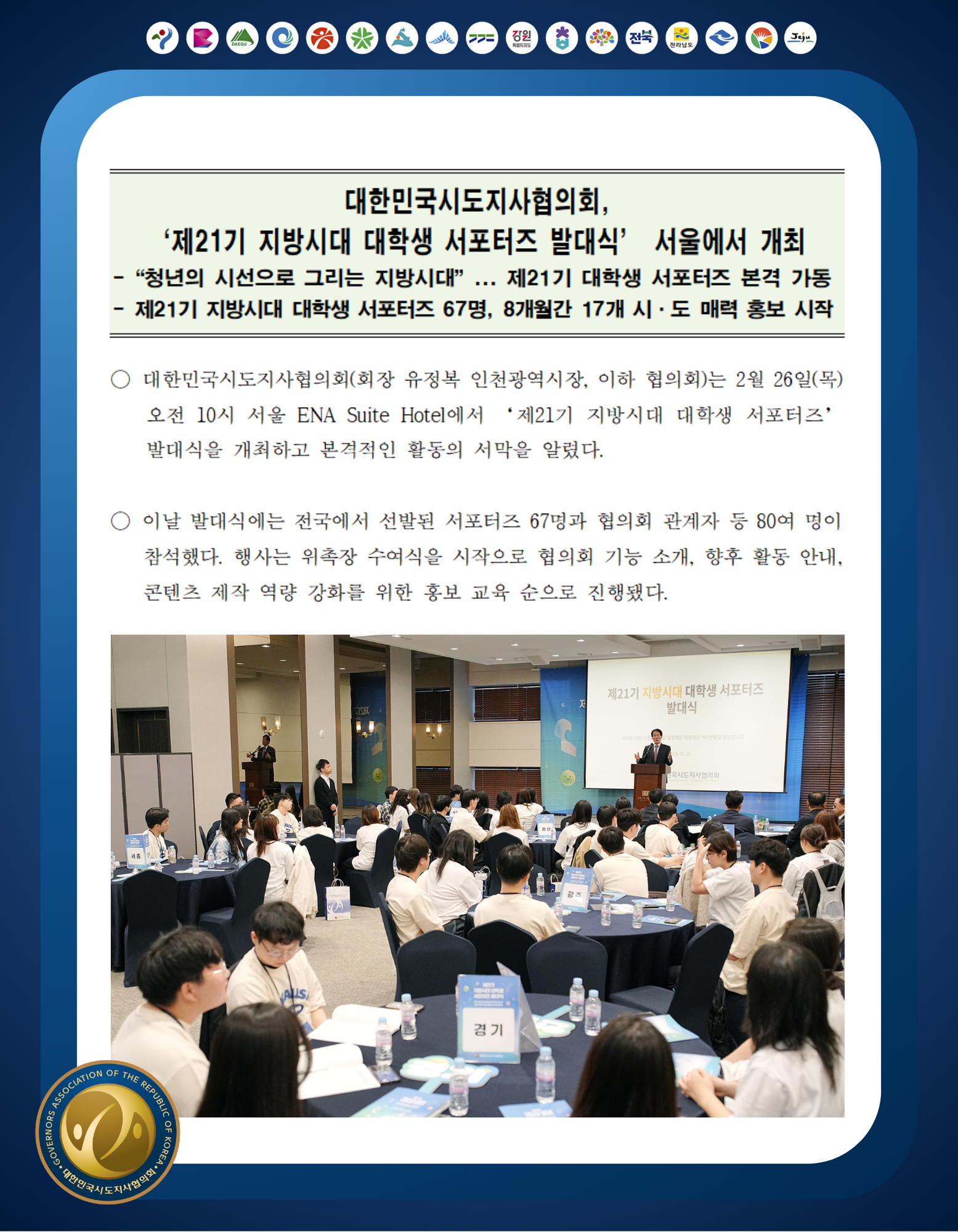 대한민국시도지사협의회, ‘제21기 지방시대 대학생 서포터즈 발대식’ 서울에서 개최
