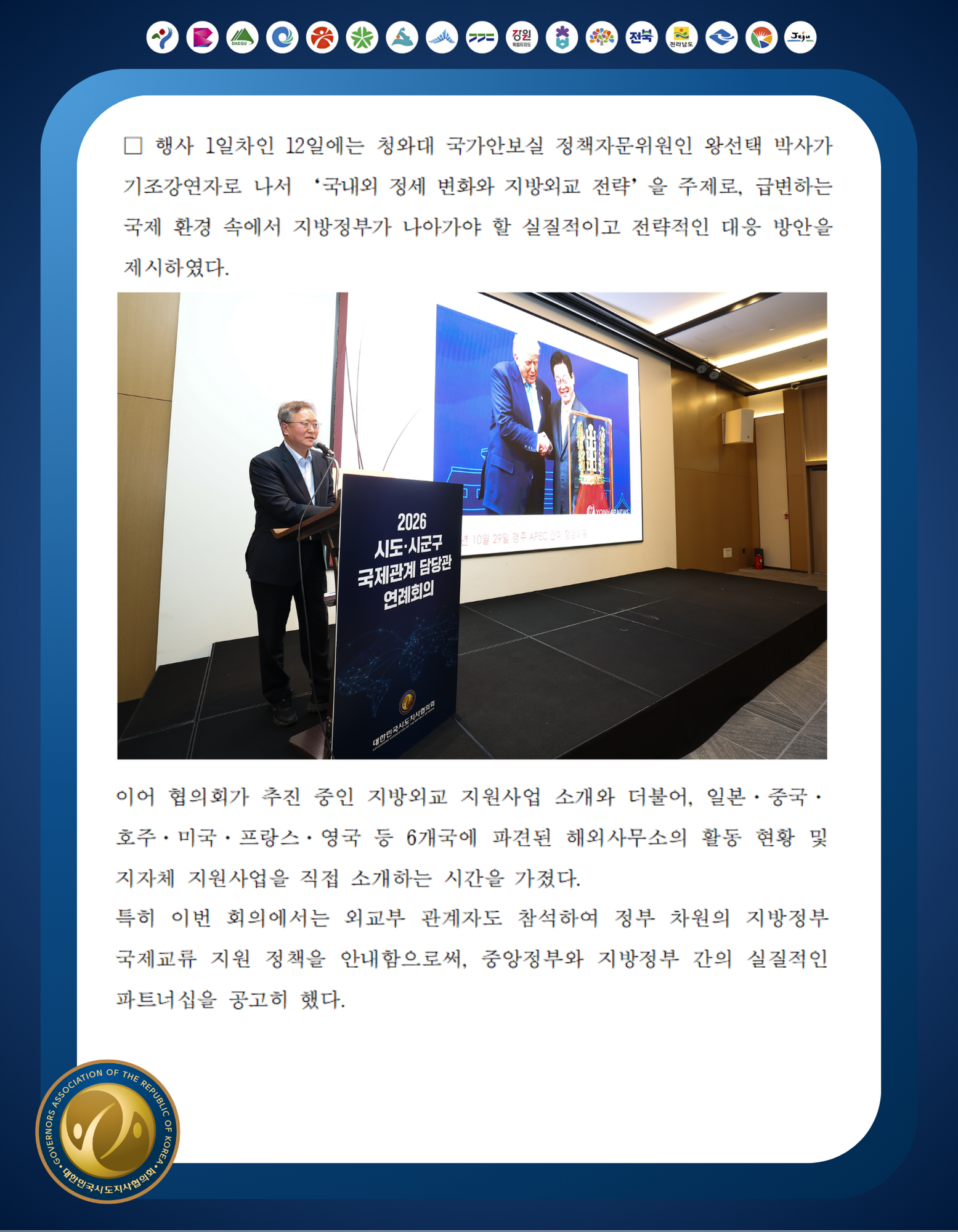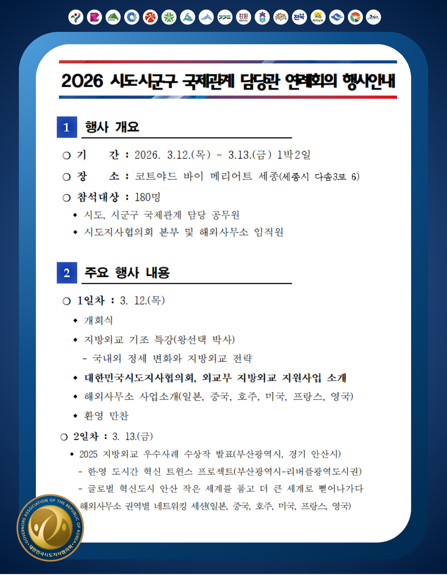 대한민국시도지사협의회의 행사/세미나를 소개합니다.