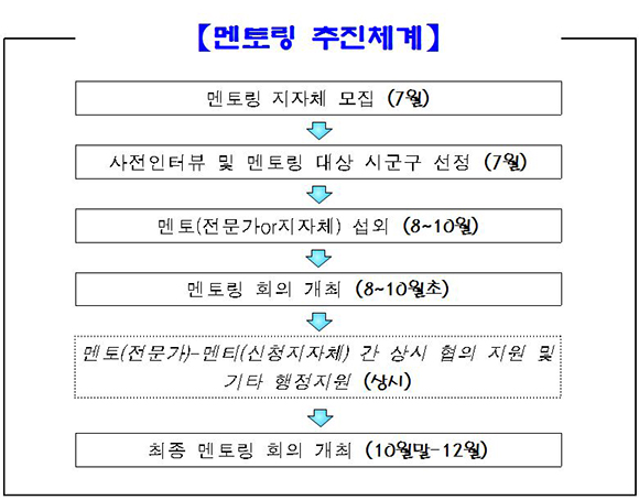 신청 지자체를 대상으로 향후 5개 지자체를 선정해 하반기 멘토링을 지원할 예정이다. 관심 있는 지자체의 적극적인 참여를 바란다.